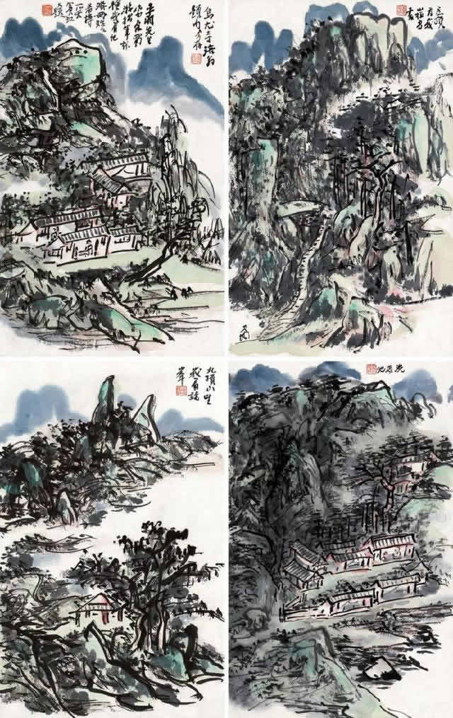 水与墨自古都是不可分割的,而在黄宾虹先生这里更加的体现了这一点。他笔下的画面之所以那么的壮阔,就是他把水和墨充分的利用了起来,使它们达到了一个平衡!而且他在用水方面具有多种方式,他可以用清水也会用洗笔水,任何水在他的手中都被赋予了魔力。