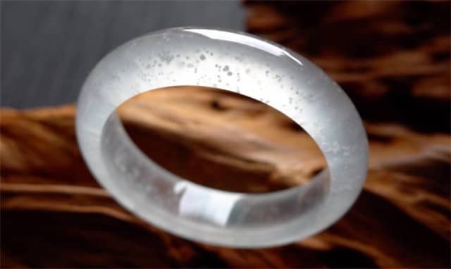 不过,种水好,透明度高的翡翠镯子,带有雪花棉,却是一个例外。而雪花棉,顾名思义,它就像是正在飘落的雪花,有一种飘逸的感觉。所以,这种类型的翡翠镯子,在市场上很受人追捧,市场价格极高,最出名的就是木那翡翠。