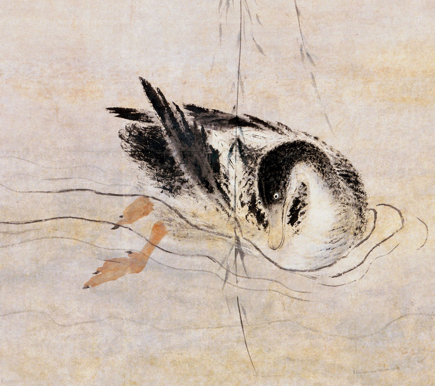 《桃潭浴鸭图》轴,纸本,设色,纵271.5cm,横137cm,现藏故宫博物院。