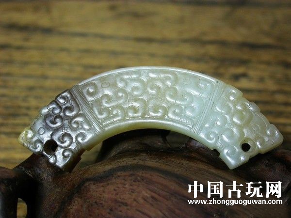 另外,鉴别高古玉的真假还可以看其包浆情况,古玉除了被腐蚀外,都会有包浆,最重要的是,打孔及刀工中的包浆应该与外面的包浆一致,并且浑然一体。有的还会有局部的氧化突起同时存在。