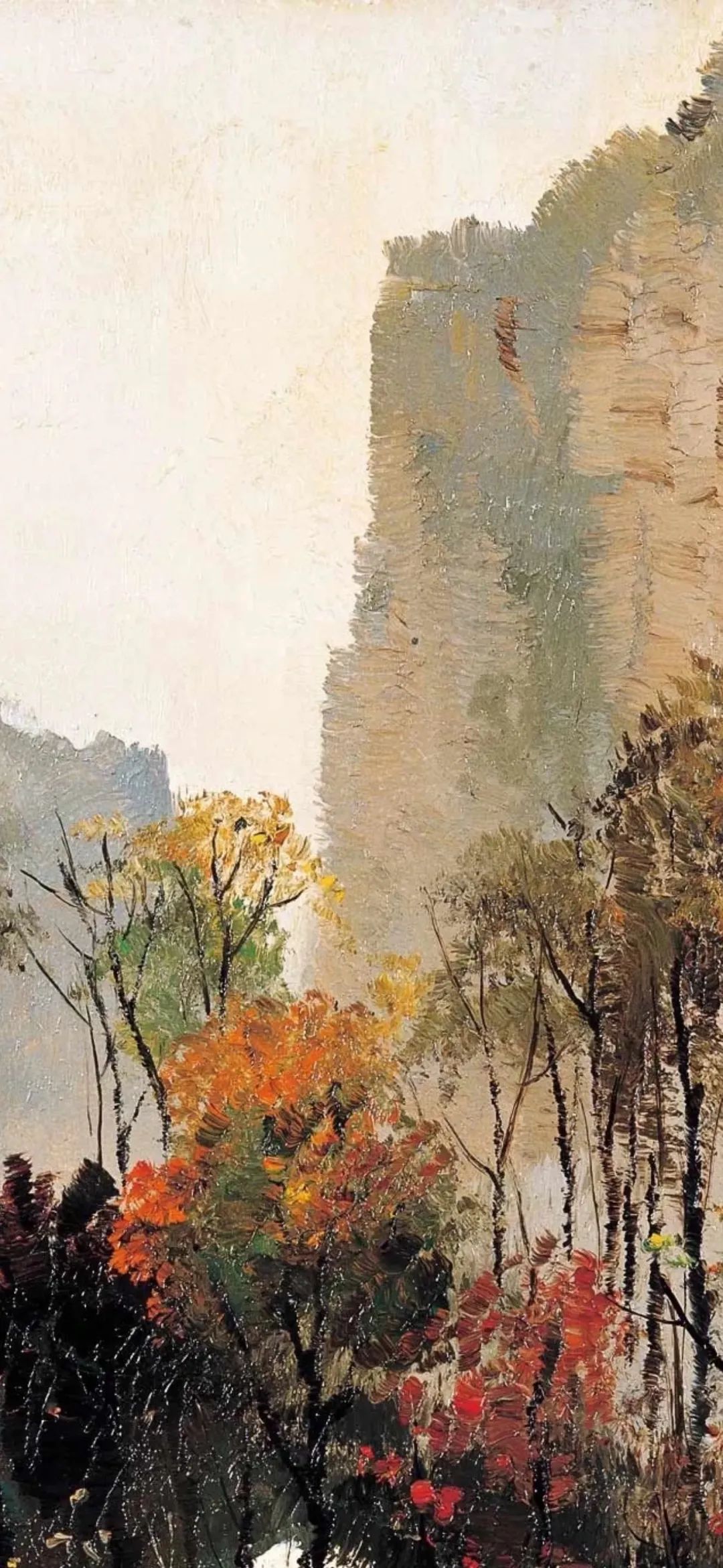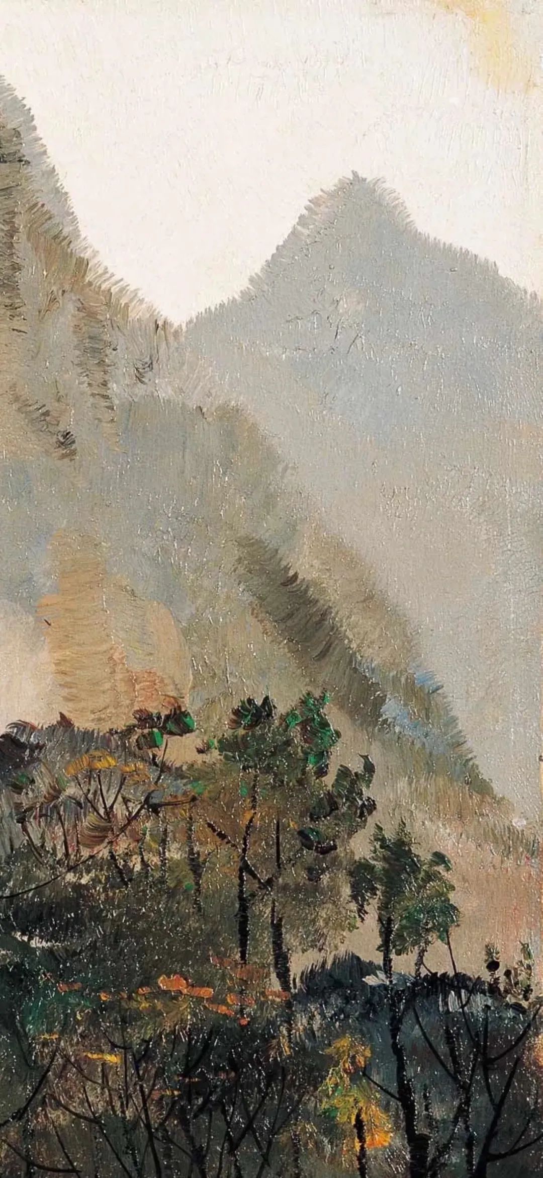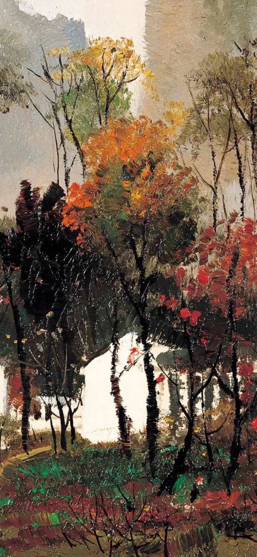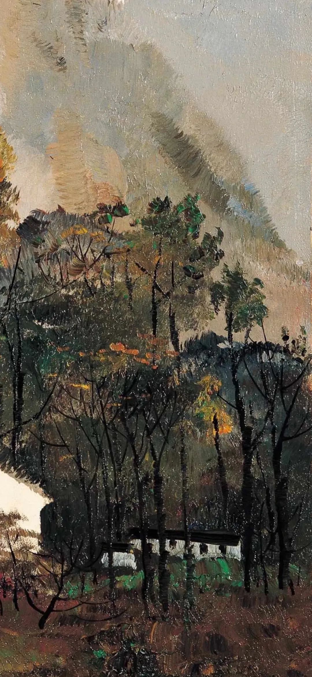 吴冠中创作了大量描绘江南白墙灰瓦的建筑和苏杭园林的油画作品。无论是《桂林山村》中山峦掩映的民居,还是《水上人家》里临水的小村落,或是《绍兴河浜》中沿着狭窄曲折的河道一路排列的房屋,都表达了对江南家乡浓浓的热爱和怀念。